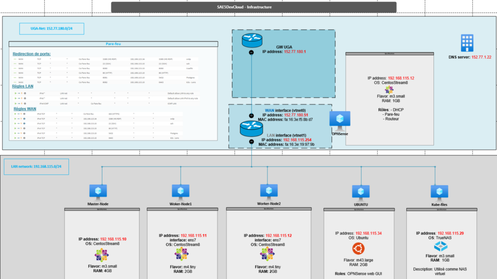Pour créer ce projet, nous disposons d’une infrastructure virtualisée sur OpenStack, ce qui nous permet de créer nos machines virtuelles ainsi que notre réseau